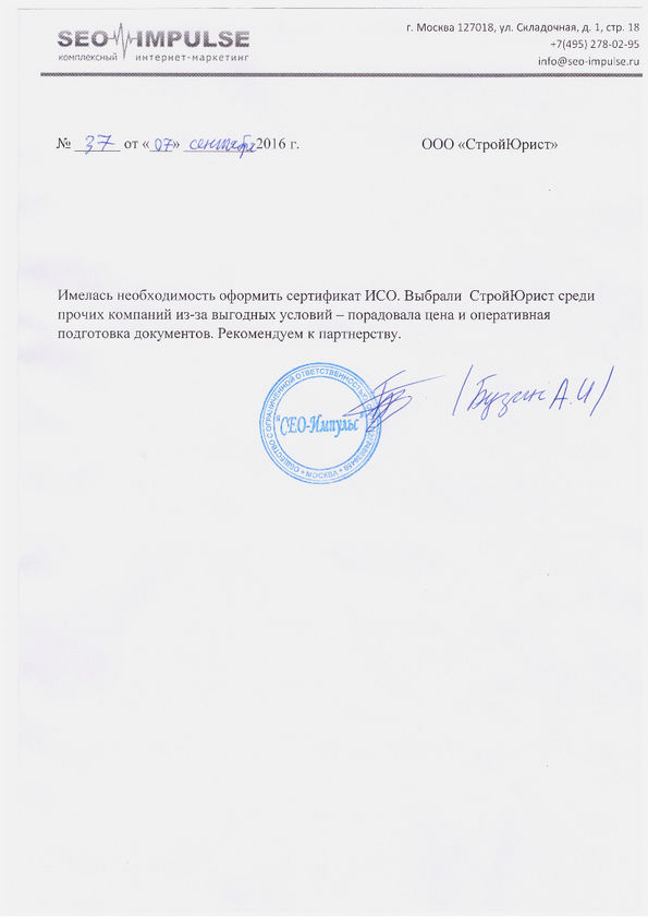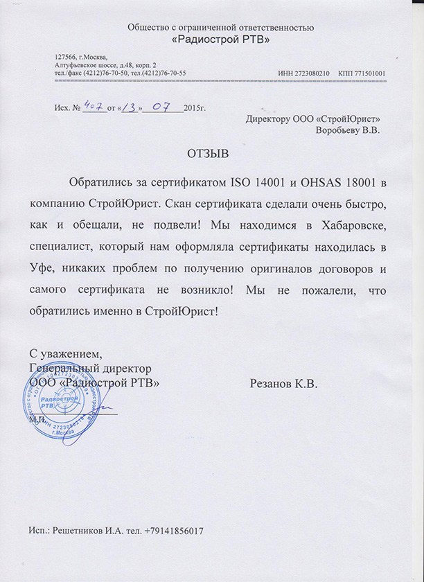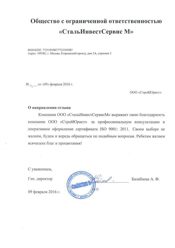 Отзывы клиентов "СтройЮрист" по ISO в Стерлитамаке