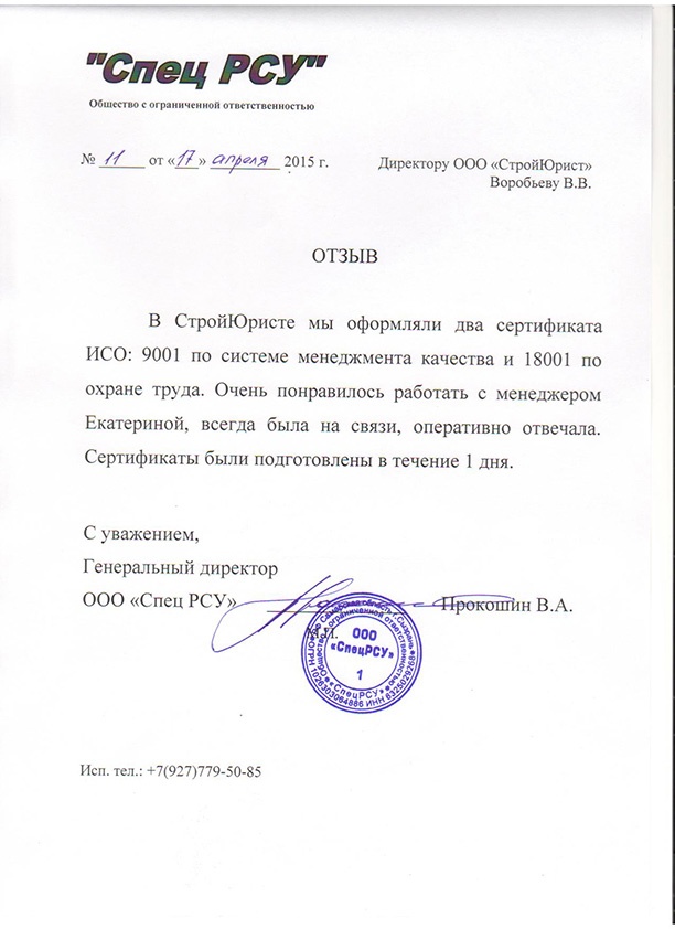 Отзывы клиентов "СтройЮрист" по ISO в Стерлитамаке