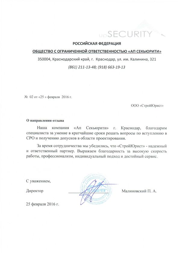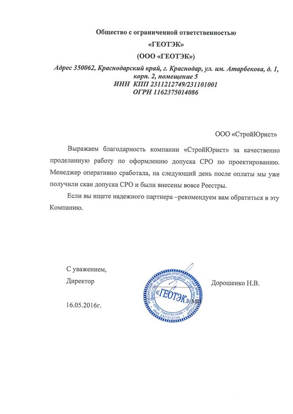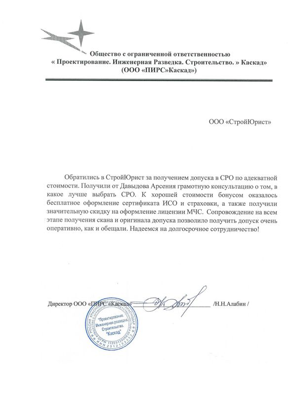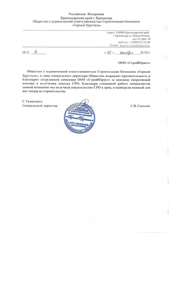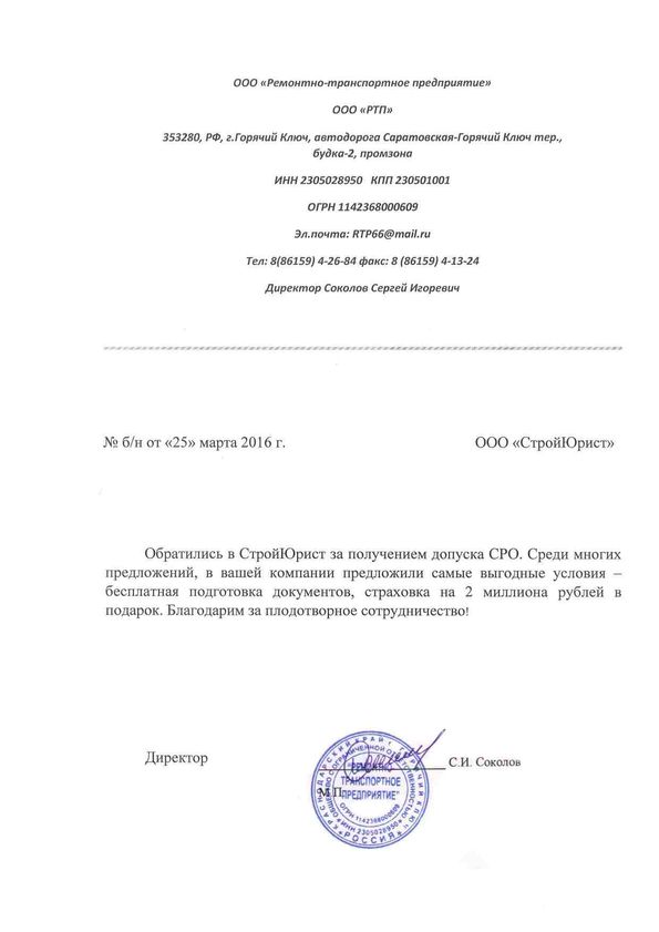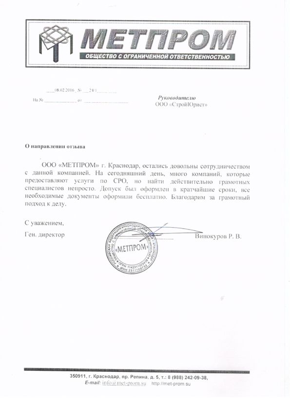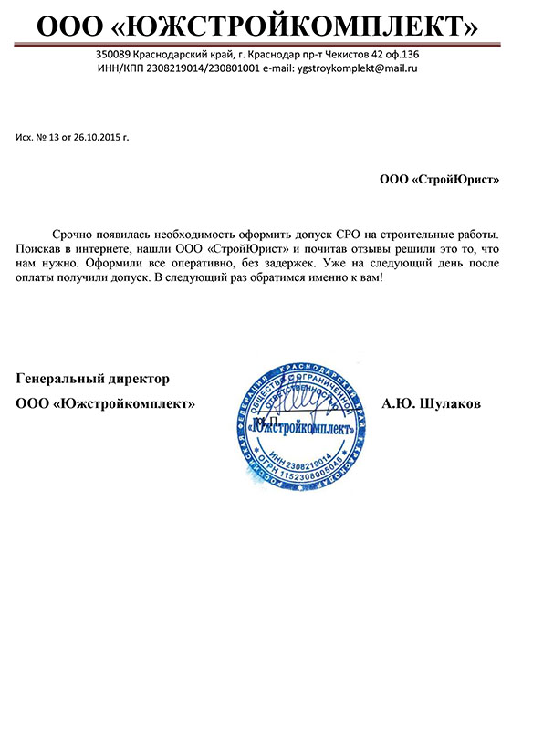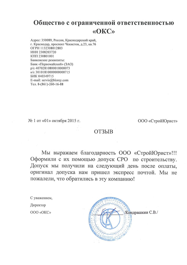 Отзывы клиентов "СтройЮрист" по вступлению в СРО в Стерлитамаке