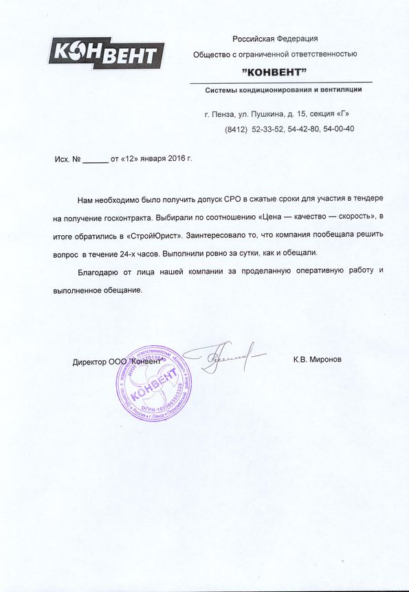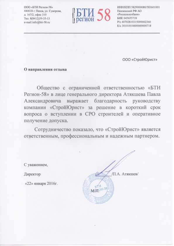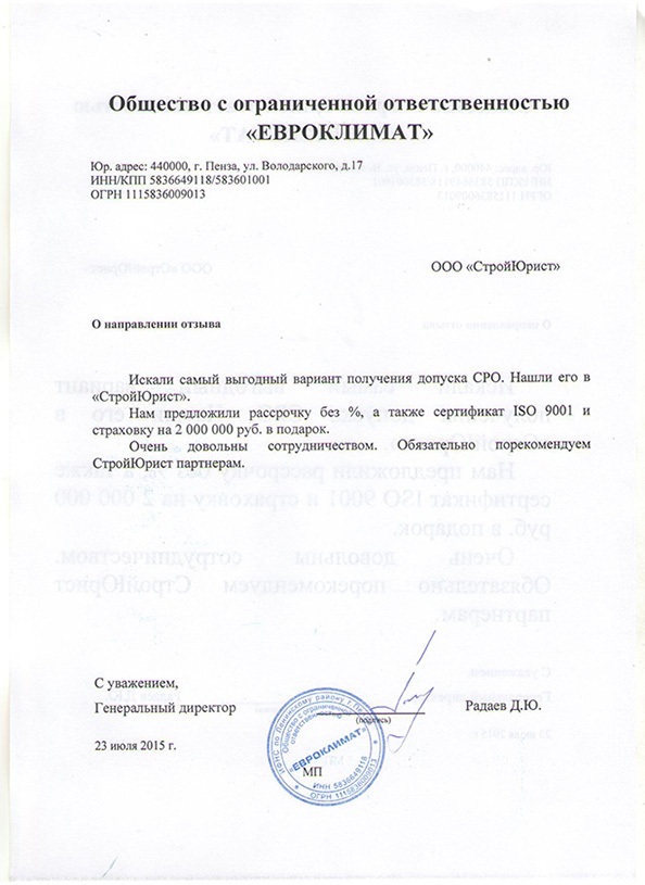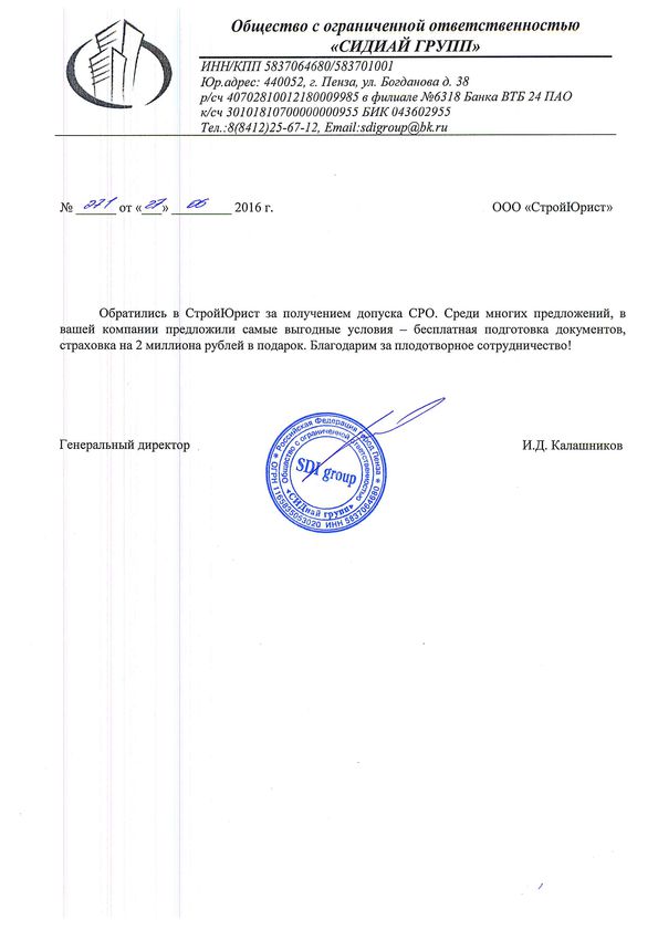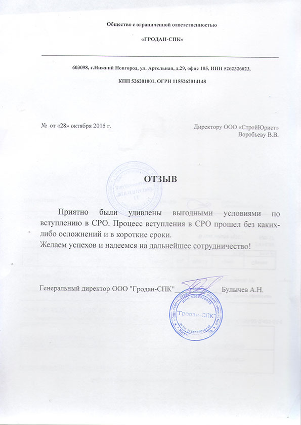 Отзывы клиентов "СтройЮрист" по вступлению в СРО в Стерлитамаке