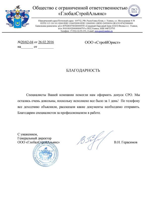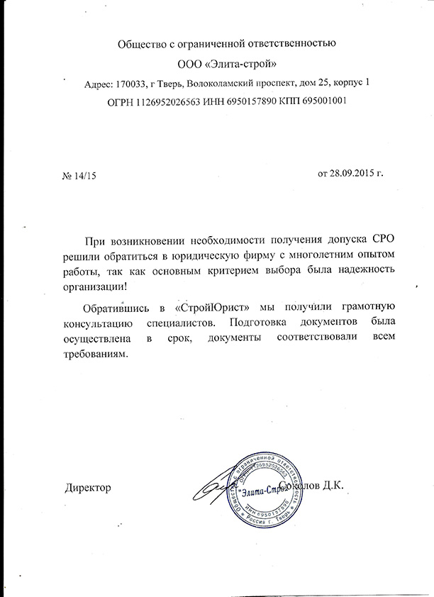 Отзывы клиентов "СтройЮрист" по вступлению в СРО в Стерлитамаке