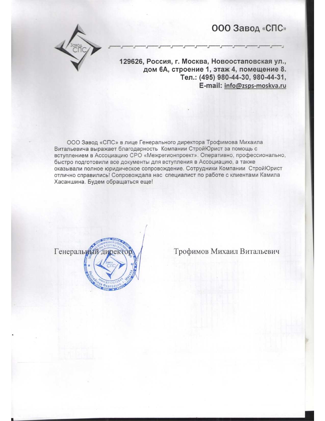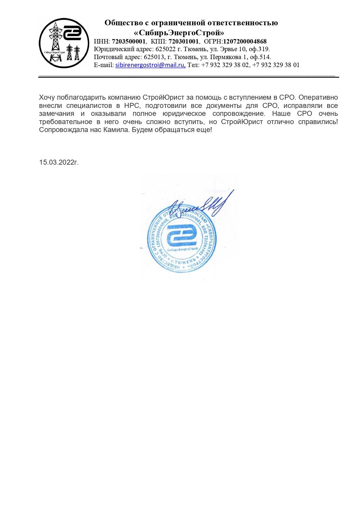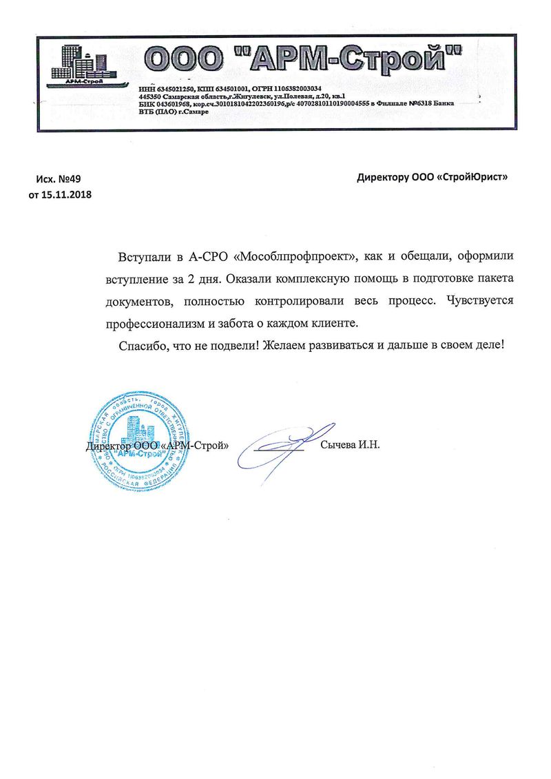 Отзывы клиентов "СтройЮрист" по вступлению в СРО в Стерлитамаке