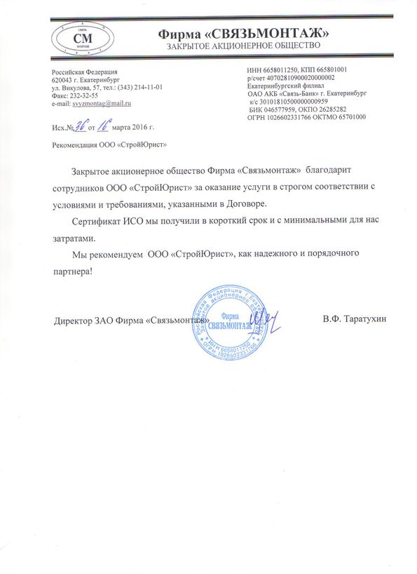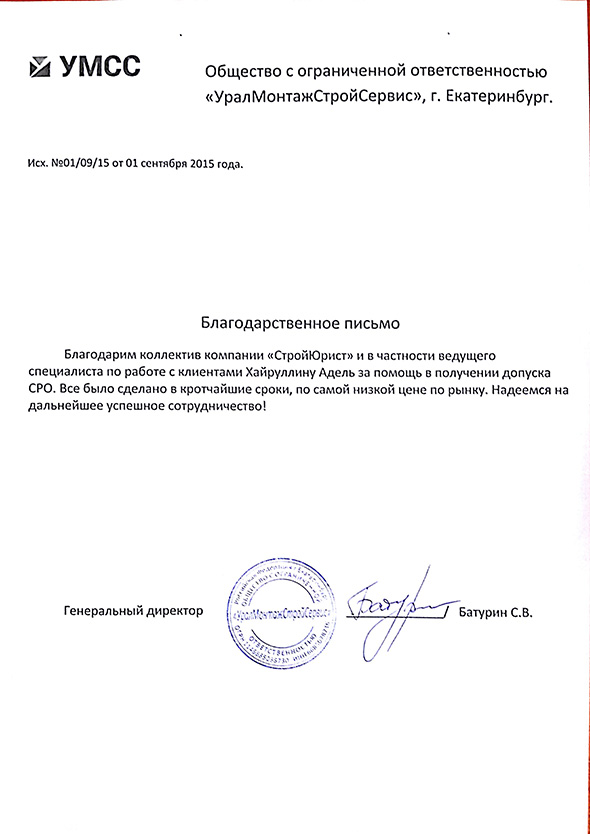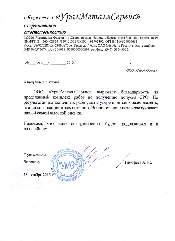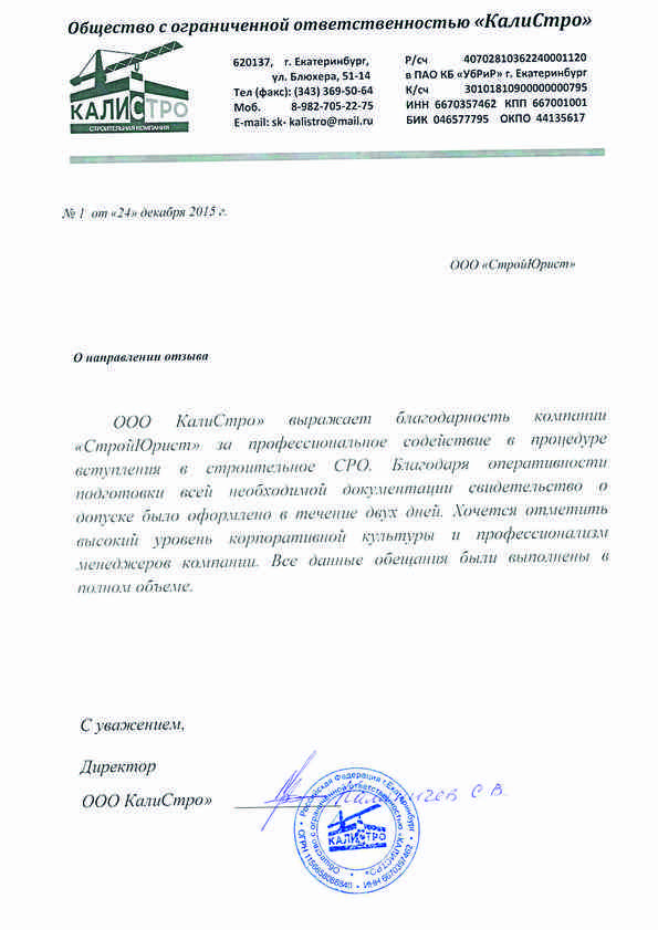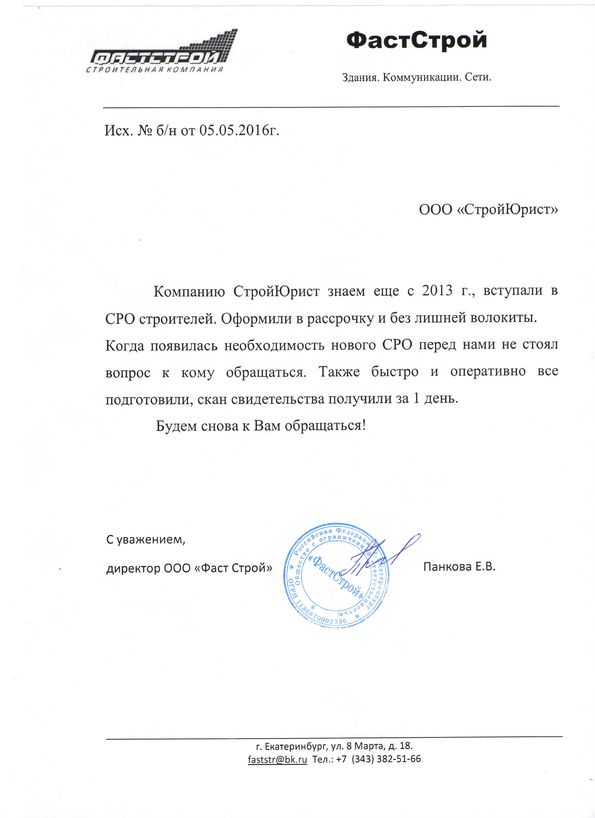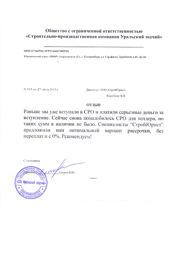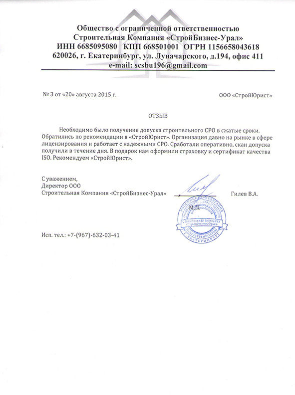 Отзывы клиентов "СтройЮрист" по вступлению в СРО в Стерлитамаке