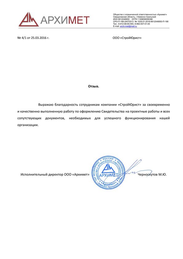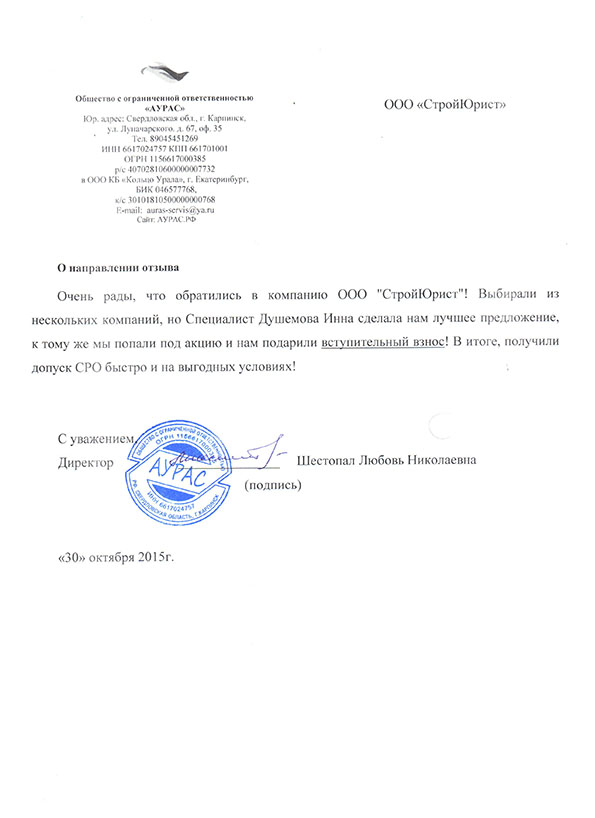 Отзывы клиентов "СтройЮрист" по вступлению в СРО в Стерлитамаке