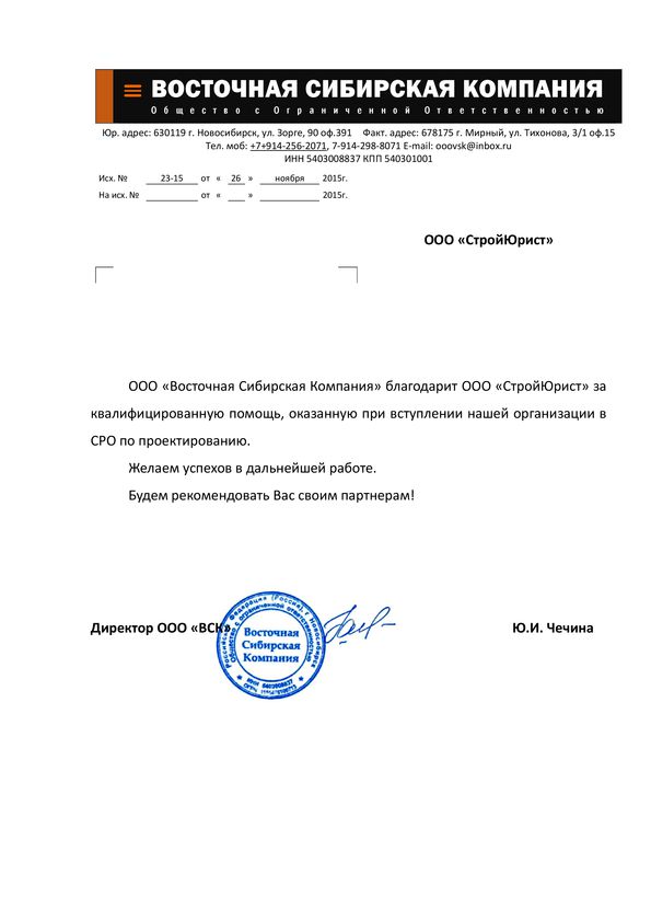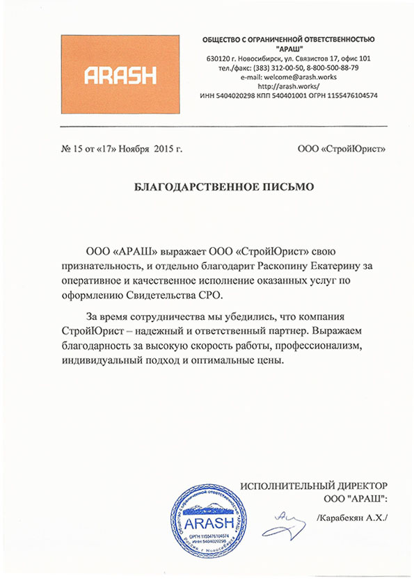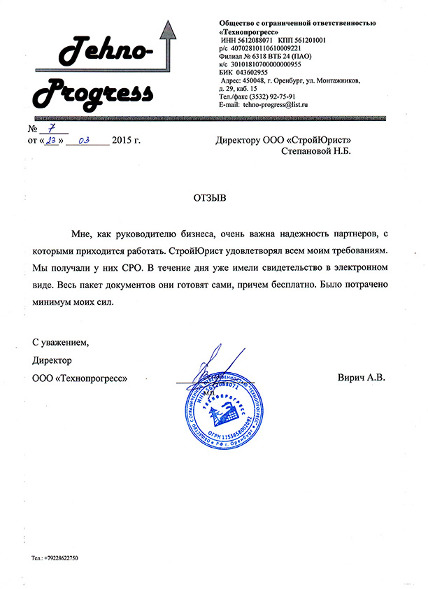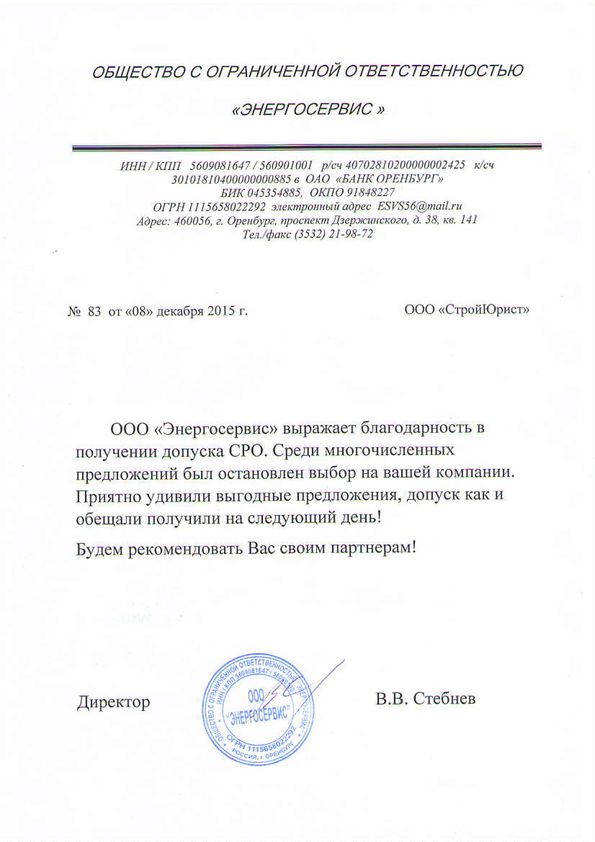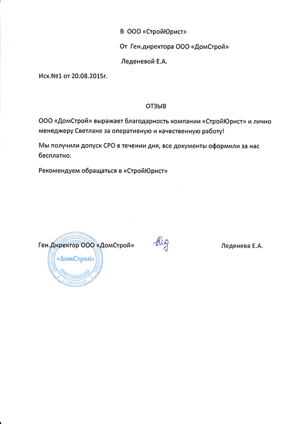 Отзывы клиентов "СтройЮрист" по вступлению в СРО в Стерлитамаке